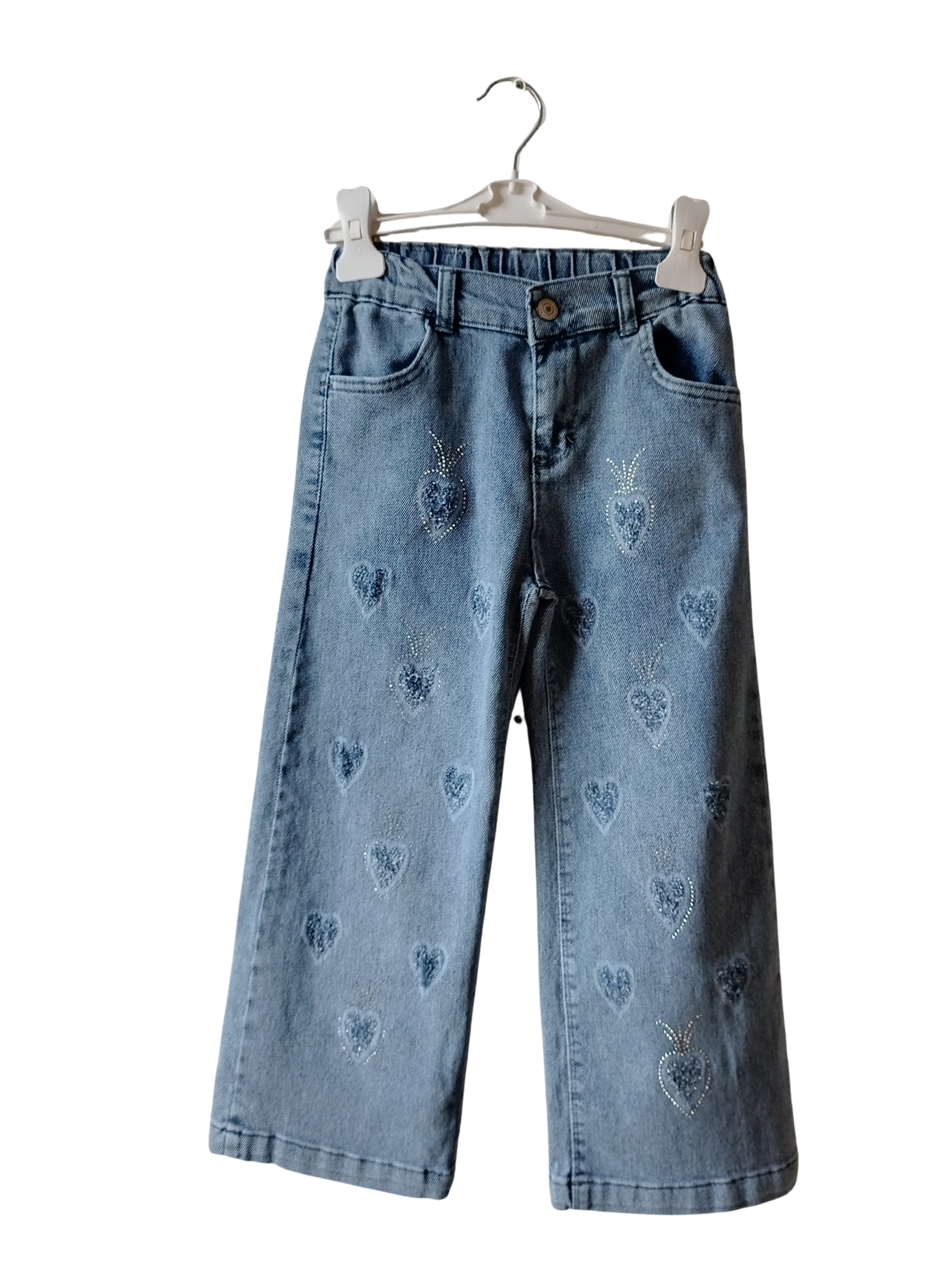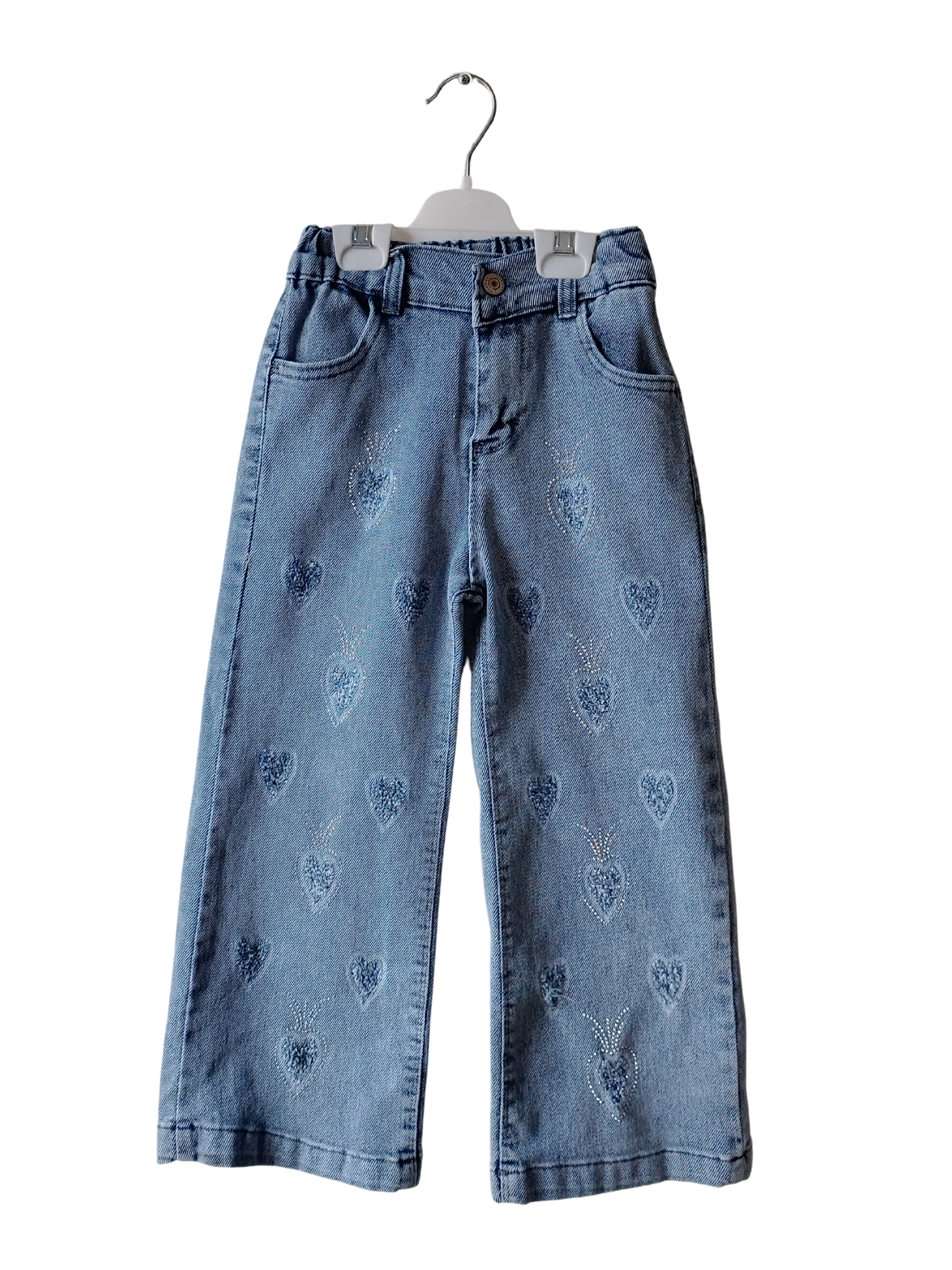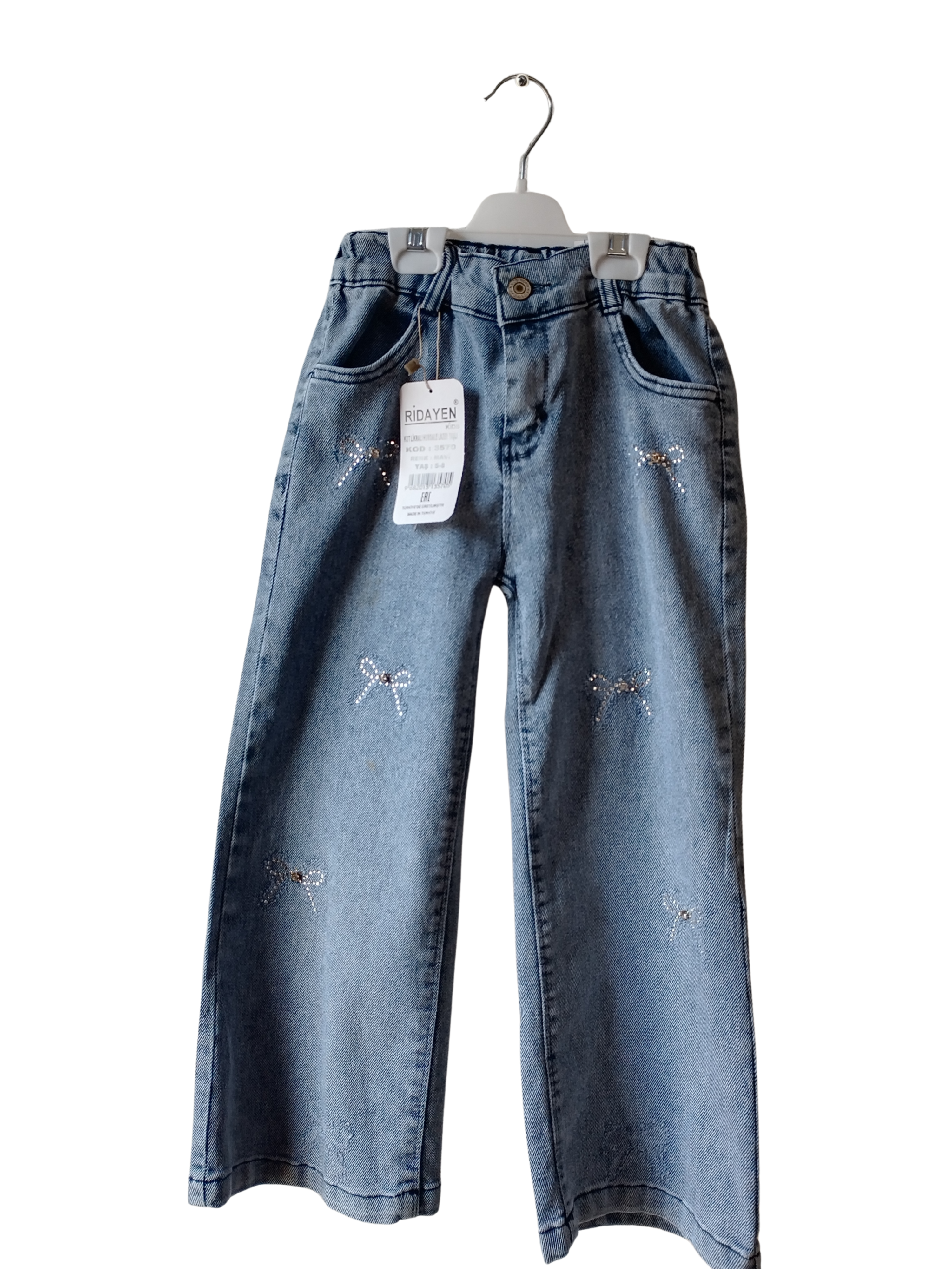 Full Likralı Kot Pantolon -Kız Çocuk Nakışlı -Taşlı