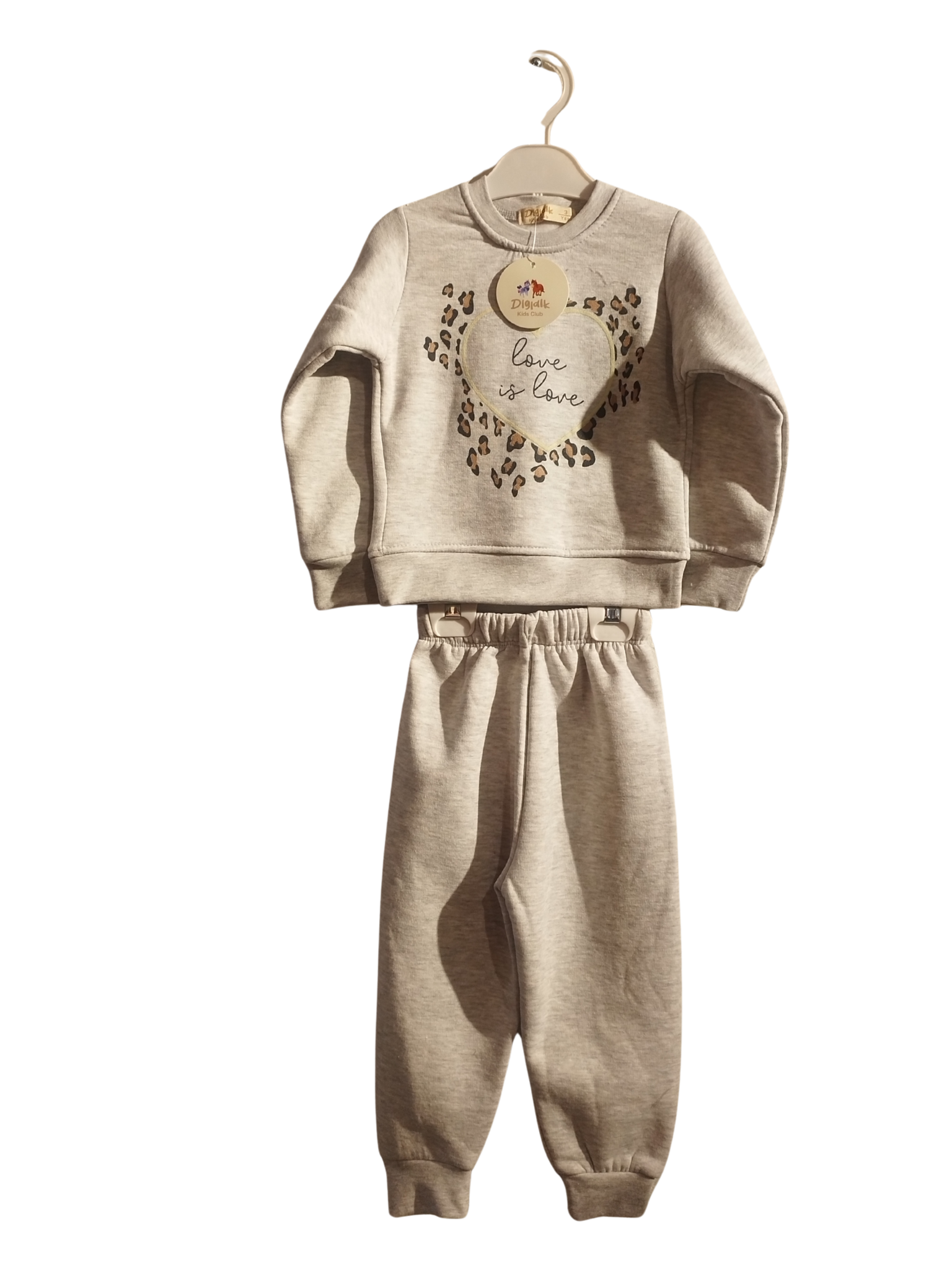 Çocukların cilt yapısına dost malzemeler kullanılarak üretilen bu eşofman takımı, hem şıklığı hem de işlevselliği bir araya getirir. Üst bölümdeki kalp detayları, çocuklarınızın kişiliğini yansıtırken, alt kısımdaki esnek yapısı hareketlerine engel olmaz.