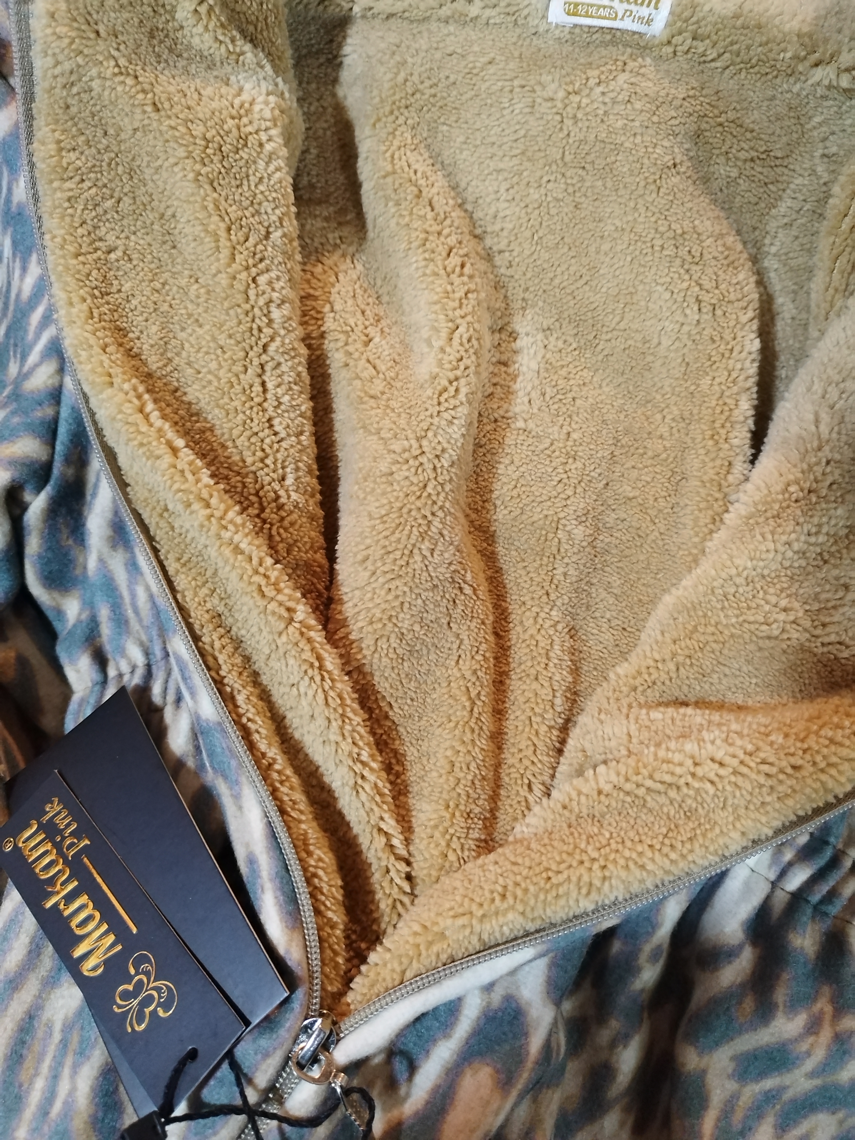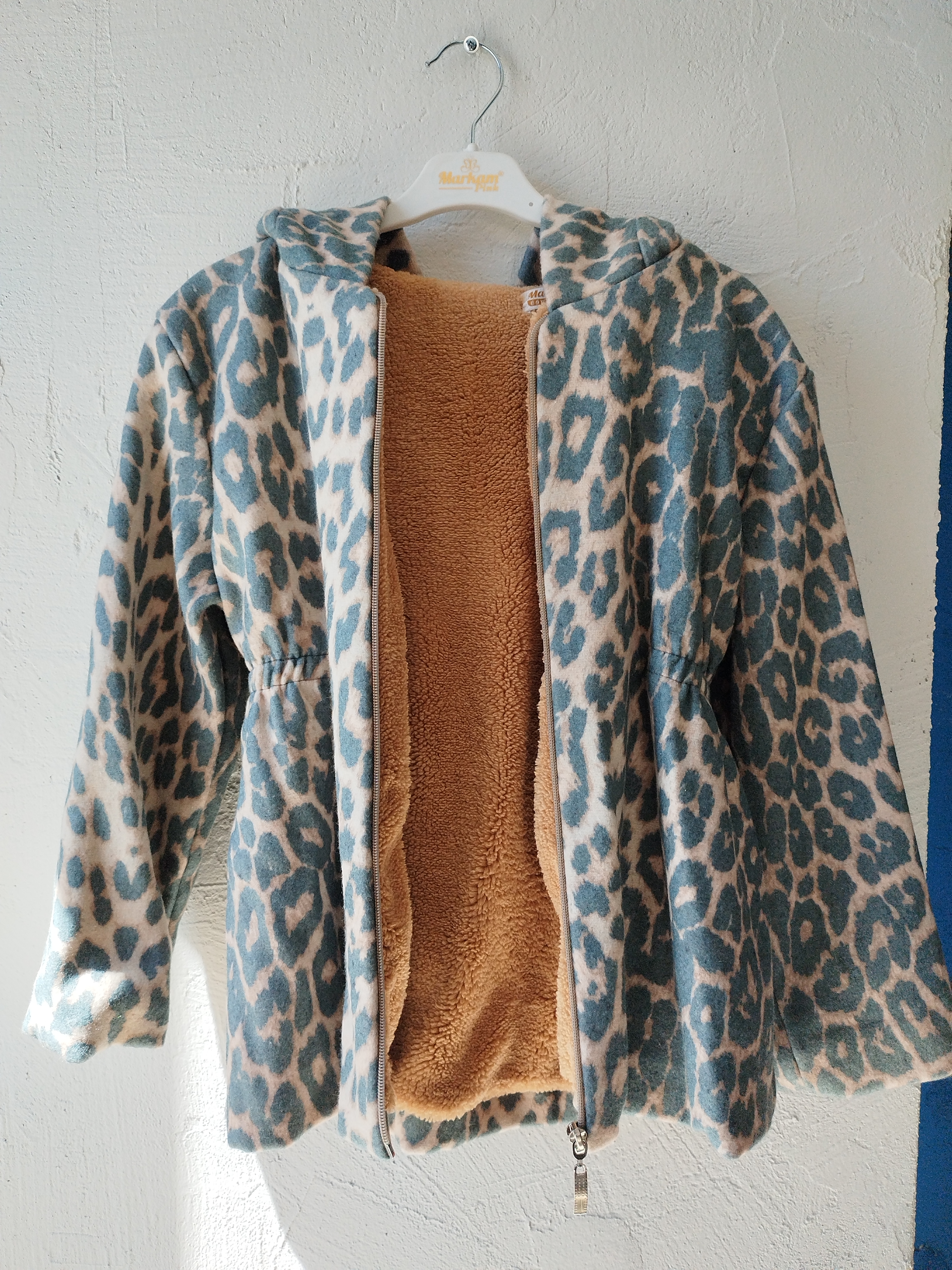 Leopar Desen Pelus Tavşan Kulak Kaban /Kız Çocuk İçi Peluş Fermuarlı